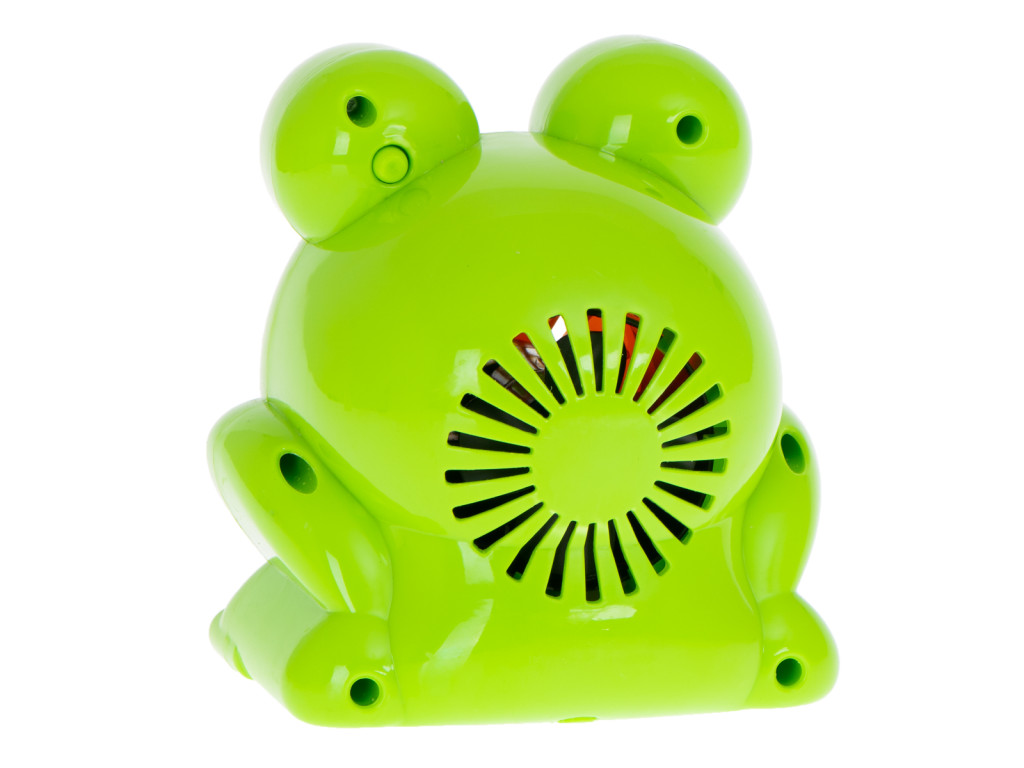 A buborékfújó béka működtetése rendkívül könnyű. Csak öntsd a mellékelt buborékfolyadékot a megfelelő nyílásba, majd kapcsold be a béka jobb szeme mögött található gombbal.