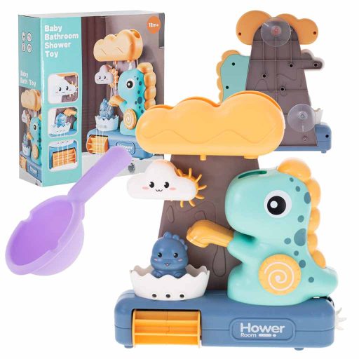A dinós fürdőjáték nem csupán szórakoztató, hanem fejlesztő hatású is. A víz öntése, a kanál használata és a forgó elemek megfigyelése segíti a gyermek fejlődését.